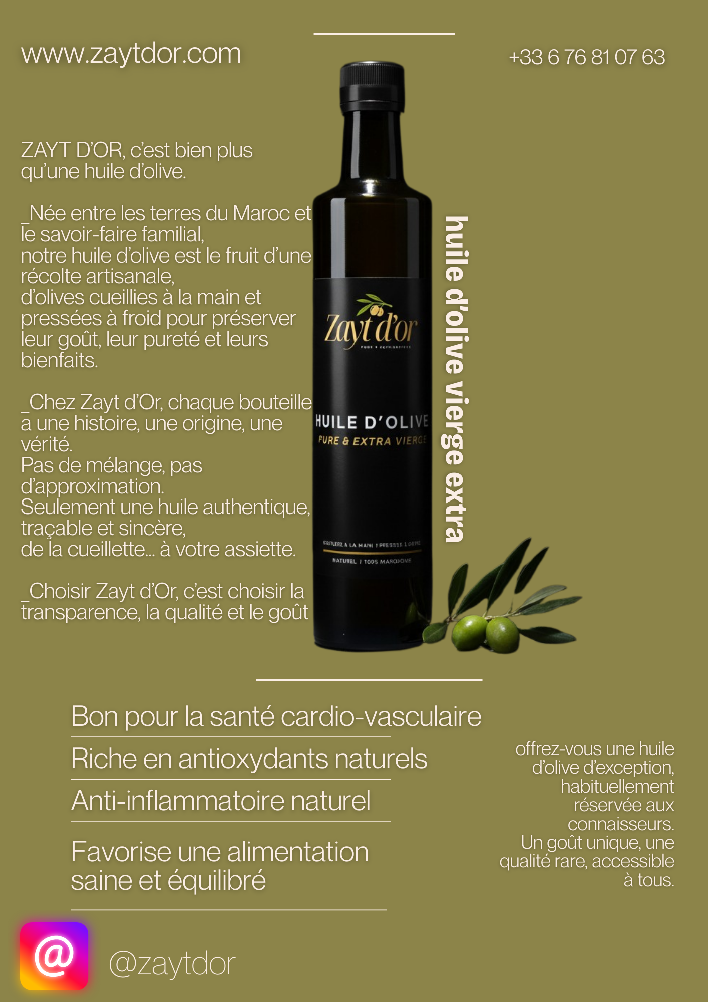 Huile d’olive Extra Vierge Zayt D’or “Équilibrée” – Douce mais avec du relief – 50cl